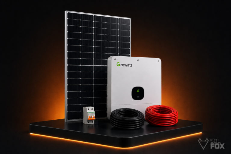 Dodatkowo zestaw obejmuje konstrukcję montażową dopasowaną do rodzaju dachu lub gruntu, okablowanie solarne oraz elementy uziemienia. W komplecie znajdują się również zabezpieczenia elektryczne w rozdzielnicach AC/DC oraz akcesoria montażowe, takie jak złączki MC4 i narzędzia potrzebne do ich prawidłowego zaciskania. Dzięki temu cały system jest przygotowany do sprawnego i bezpiecznego uruchomienia.